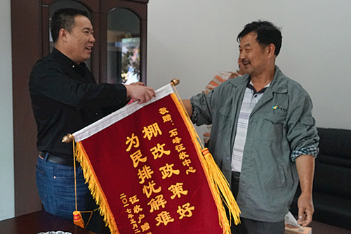 6月6日上午,家住钢厂的被征收人戴安民把一面写着“棚改政策好 为民排忧解难”的锦旗送到了石峰征收中心主任陈石泉手中,感谢株洲市的棚改惠民政策和征收工作人员不厌其烦的优质服务工作,让他家的生活环境得到了实实在在的改善。