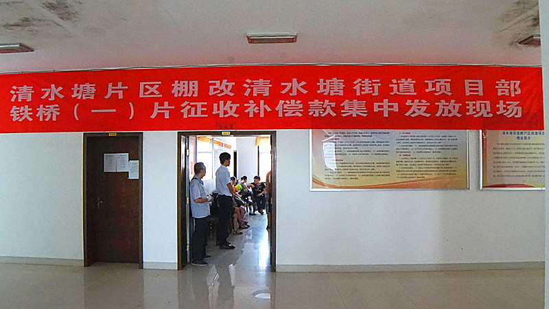8月22日,清水塘片区棚改项目征收指挥部在清水塘街道项目部三楼会议室,为清水塘棚改三期铁桥棚户区(一期)房屋征收范围内的111户被征收户发放了货币补偿款和购房补助卡。
